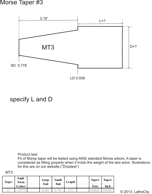 Machinable end Morse #2 taper / steel [drawing ] Machine your own tailstock accessories.